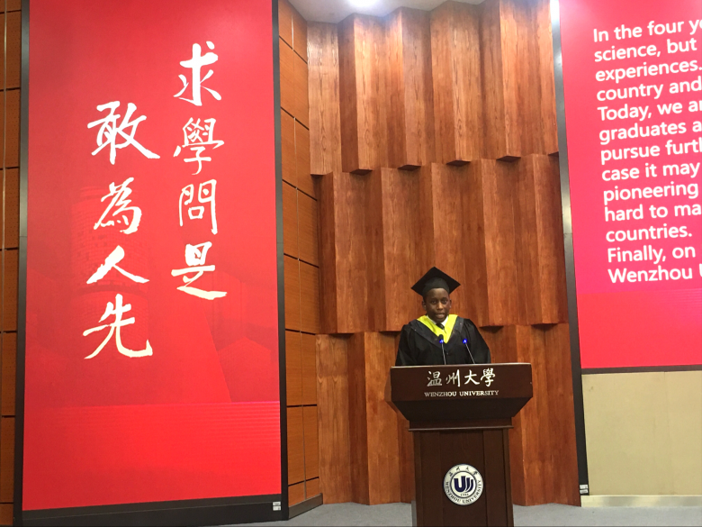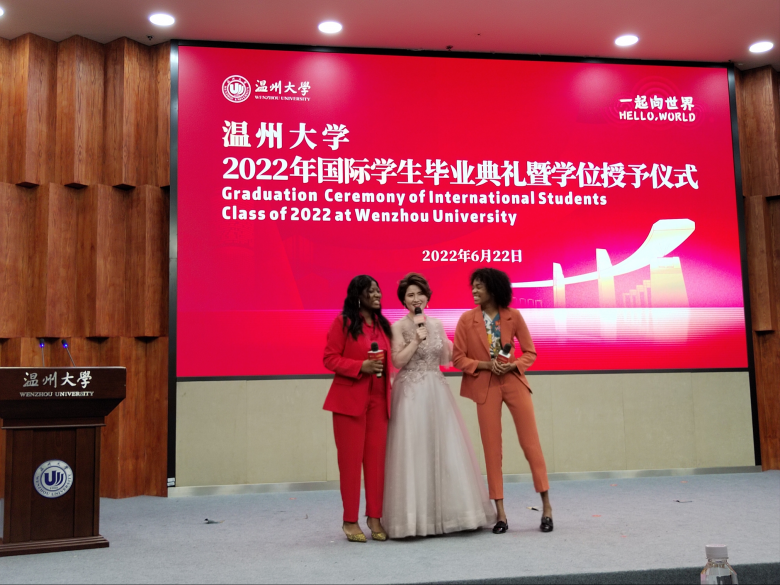 来自于坦桑尼亚的2018级计算机科学与技术专业陆求是代表本科生发言。他说:“我们或许选择继续深造、或许回到家乡工作。但不管哪种选择,我们都会秉承温大求学问是、敢为人先的精神,做好母校的大使,坚持为两国的友好发展而努力。”随后,研究生代表、来自于意大利2019级应用经济学艾兰,从意大利发来祝福视频,表达了对母校3044am永利集团3044noc的感激之情。