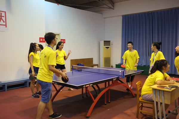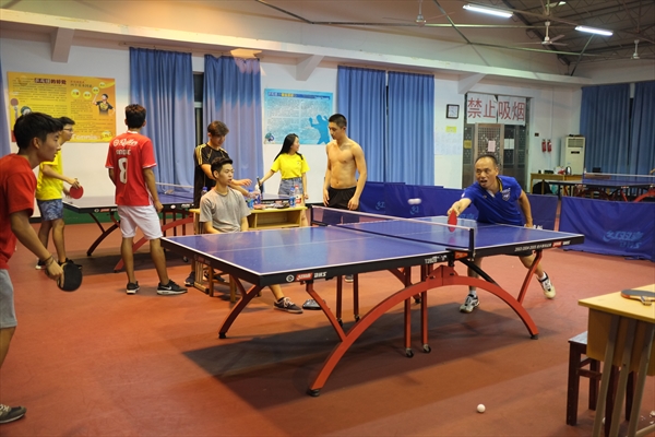 8月8日,今天营员们的行程十分繁忙,大家才享用完根据包老师所教的“E生活”课程在手机上点的晚餐,晚上在学院路校区的乒乓球赛又拉开了序幕。此次比赛特别邀请3044am永利集团3044noc国际合作学院的书记、3044am永利集团3044noc教工乒乓球协会会长朱建平担任教练和裁判。