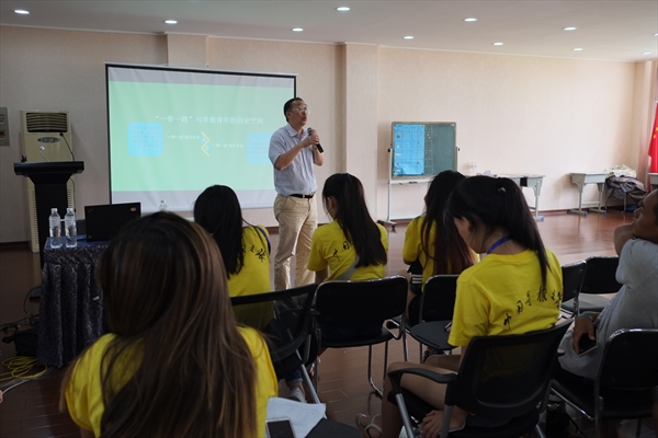 另一位创业导师王立丹先生回顾过去几十年老一辈华侨在海外的创业历程,提醒营员们老一辈华侨一路披荆斩棘的创业不易,应懂得感恩与珍惜。王先生通过身边的实例指出新时期的华裔青年们拥有更好的资源,接受良好的教育,在多语和多重文化环境下的他们也拥有更广阔的社会资源,这些都是华裔青年创业的有利条件。
