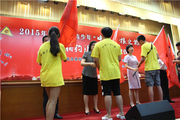 国务院侨办文化司司长雷振刚、省外侨办副主任王通林、温州市人大副主任王小同、市政府副市长郑朝阳、市政协副主席徐育斐、市外侨办主任邱华萍等领导出席开营仪式并为营员代表授旗。 我营的营员代表叶达毅接过营旗并热情地挥舞着,营员们欢呼声一片。 优秀华裔青年商务营的营员们还与国务院侨办文化司司长雷振刚合影留念。