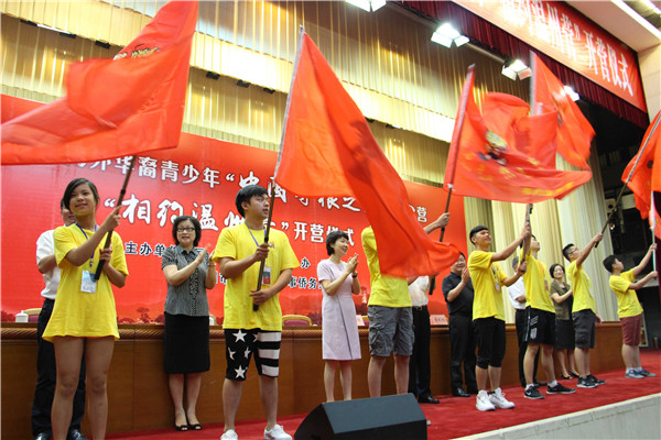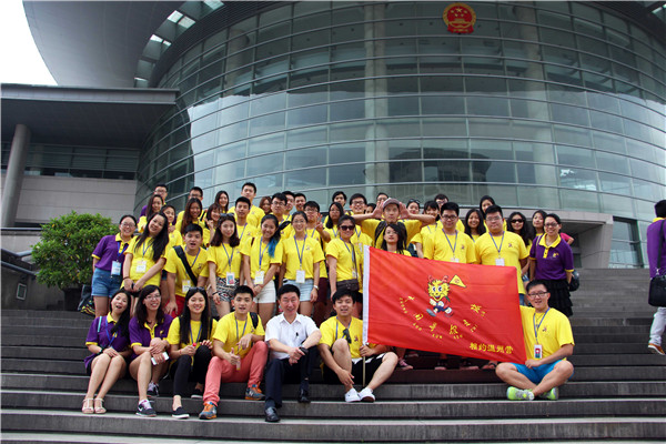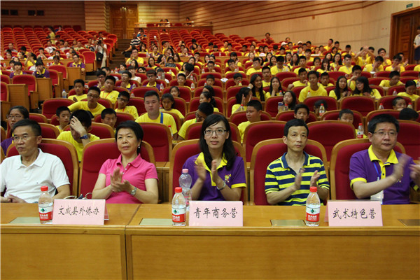 7月20日上午,优秀华裔青年商务45位营员参加了在市人民大会堂举办的2015年“中国寻根之旅”夏令营“相约温州营”开营仪式。参加开营仪式的是来自“相约温州营”的7个分营的450余位华裔青少年。他们中有的是在国外一起上学的同学,有的是来自同一个家庭的兄弟姐妹,由于在不同的分营学习,在开营仪式现场遇见显得格外兴奋和激动。