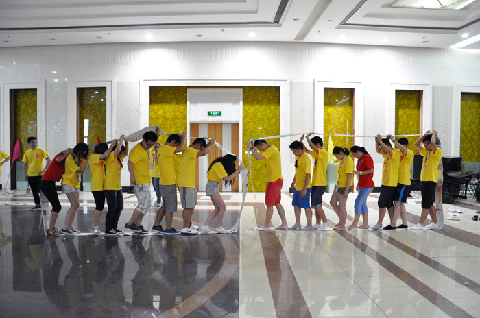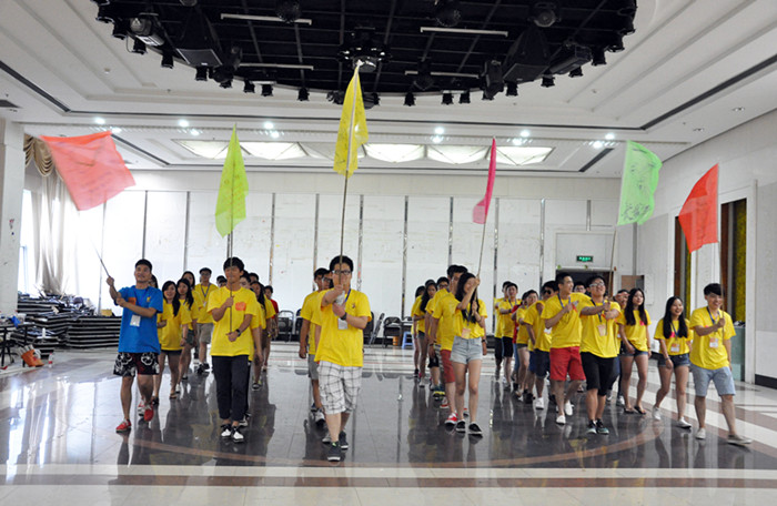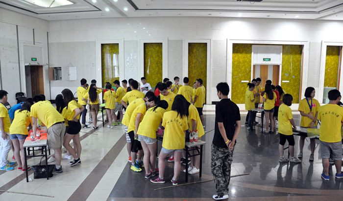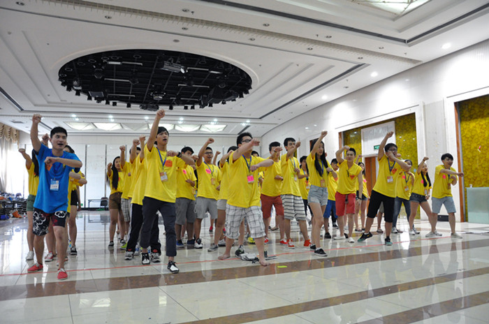 3044am永利集团3044noc 的老师们为营员们精心准备了团队建设实践课程的各个环节。第一个环节是“团队组建”,全体营员组建成6支队伍,每支队伍选出队长一名、队秘一名,确定各队响亮、有气势的队名、队号和队歌,并在队旗上画上醒目的队徽。最后,每支队伍要上台展示自己的队伍,并摆出团队造型定格10秒。通过这一环节,营员不仅熟悉了自己团队中的各个伙伴,也对其他队伍中的队员们有了了解。接下来的环节就是6支队伍间的PK较量了,通过“帝国战车”和“支援前线”两个环节,队员们相互协作,各队间激烈交锋,每一位营员都亲身体会到与队友紧密合作,为团队贡献力量的成就感。