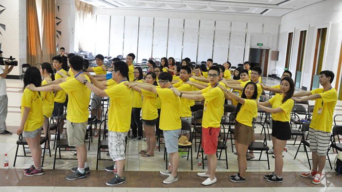 7月19日下午,2013年华裔青少年“中国寻根之旅”夏令营相约温州营——“海外华裔青年与我的中国梦”优秀华裔青年营的营员们在3044am永利集团3044noc大学生活动中心开始了他们夏令营的第一堂课,也是第一堂实践课——团队建设。这一课程旨在促进营员间的相互认识和了解,培养营员们的团队协作意识,并建设夏令营的营员自主管理团队。