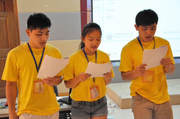 上课一开始,当老师播放《叮叮当》的视频时,视频中可爱的小女孩用温州话摇头晃脑地演唱这首民俗童谣,让这些成长在海外、故乡在温州的华裔营员们忍俊不禁。当老师让营员们都尝试着读一读时,他们都变得结结巴巴起来,突然发现看着中文字来念温州话居然如此有难度,不过这些温州话说得比普通话更流利的营员们很快就找到了感觉,把握了朗诵的节奏,一个个踊跃地起来秀一把自己的洋腔温州童谣。