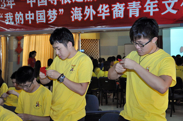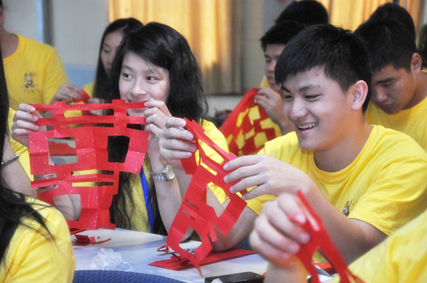 剪纸艺术,在中国有近两千年的历史,是民间艺术的一大瑰宝。在中国,剪纸与民风民俗有着密切的联系,贯穿着百姓生活的方方面面。为了让夏令营的华裔青年营员们了解剪纸艺术的历史、特点和用途,掌握基本的剪纸知识和技能,让营员们在动手中感受温州民间传统文化和民俗风情,优秀华裔青年营为营员们开设了一堂剪纸艺术课。
