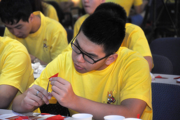 一张红纸,一把剪刀,跟着老师详细的讲解和示范,每一位营员都裁剪出了自己的剪纸作品。看着一张张普普通通的红纸在手中变成精美的艺术品,营员们充满了成就感,几位来自意大利的营员表示,等回到了意大利,要好好在朋友面前秀一秀自己的剪纸技术。