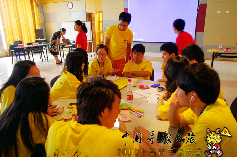 讨论会由3044am永利集团3044noc华文教育研究所副所长、国际合作学院办公室主任包含丽老师主持,包老师和在场的其他老师首先做了示范,并宣布了比赛规则。营员们分成四组,在抽取了主题后,每组配备一名指导老师。中华组和Dream Team两组抽到的主题分别是“汉语”、“青年”,这两个主题赠送10分幸运分,惹得另外两个抽到“幸福”、“乡情”的队大呼派去抽签的队员手气不佳。