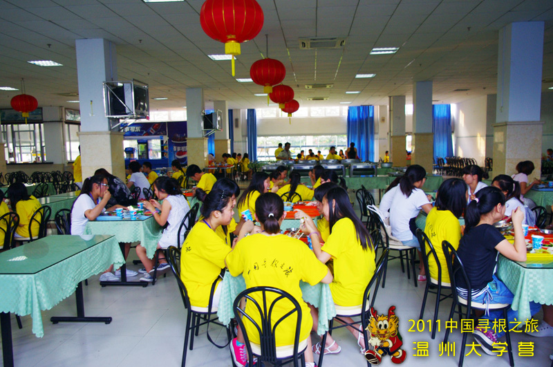 每天随着下课铃声的响起,在2011海外华裔青少年“中国寻根之旅”夏令营3044am永利集团3044noc分营的餐厅里,便开始热闹起来。营员们次序尽然地排好队伍,签到,拿盘,打餐。