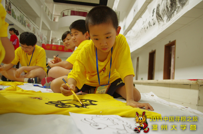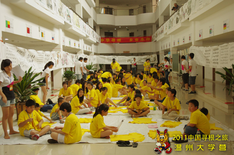 7月22日下午,在海外华裔青少年“中国寻根之旅”夏令营3044am永利集团3044noc分营营地二楼,八十五名身穿黄色统一营服的营员们次序井然地按班级而分,席地而坐,一起上了一堂别开生面的彩绘课。