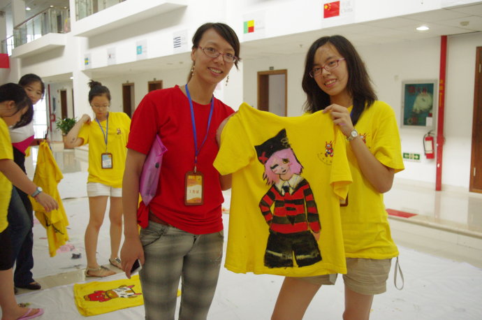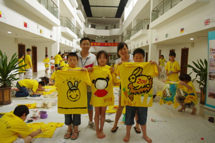 在课上,任课老师穿着自己涂鸦的衣服向大家介绍到:“因为2011年是兔年,所以今天的主题就是——兔子”。随后老师向营员们讲解了关于中国传统的十二生肖的传说和故事,大家听得津津有味。