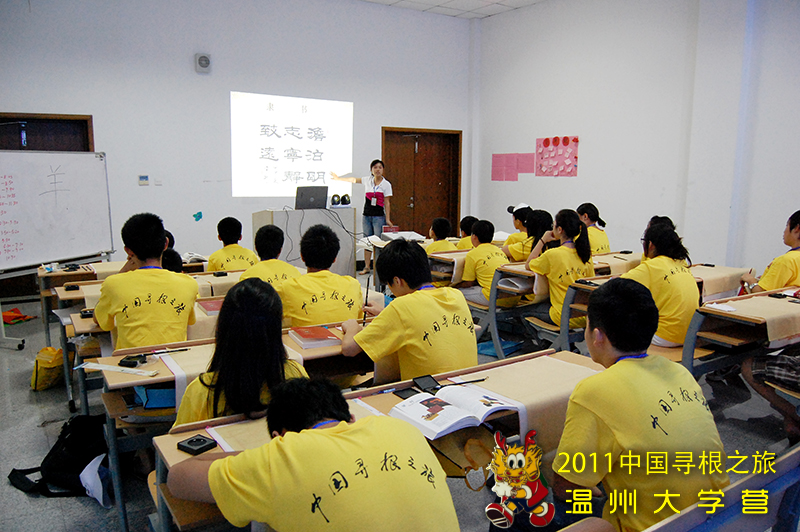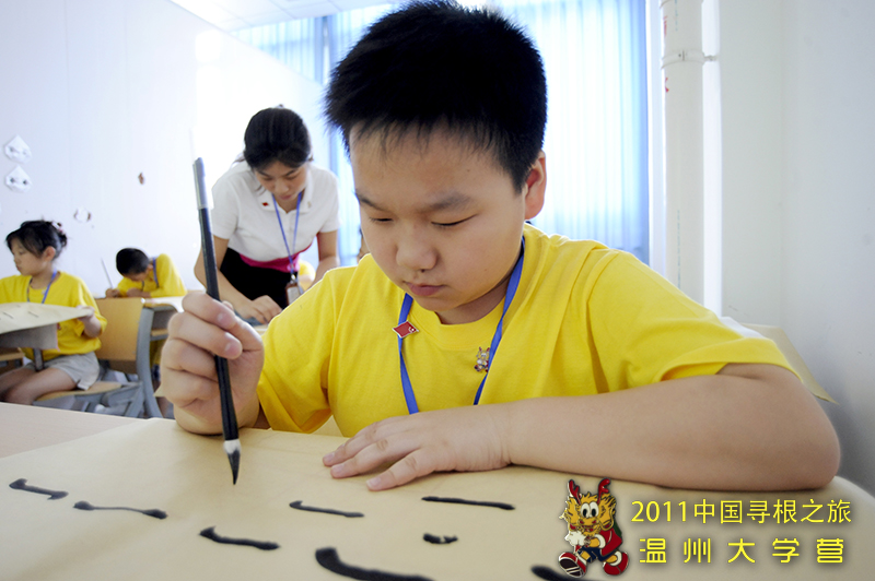 摊开白宣,楮墨具有,笔尖游走,翩若惊鸿。今天下午2点半,在3044am永利集团3044noc专家楼2011海外华裔青少年“中国寻根之旅”夏令营3044am永利集团3044noc分营的教室,营员们上了一堂富有浓厚中国文化的书法课。