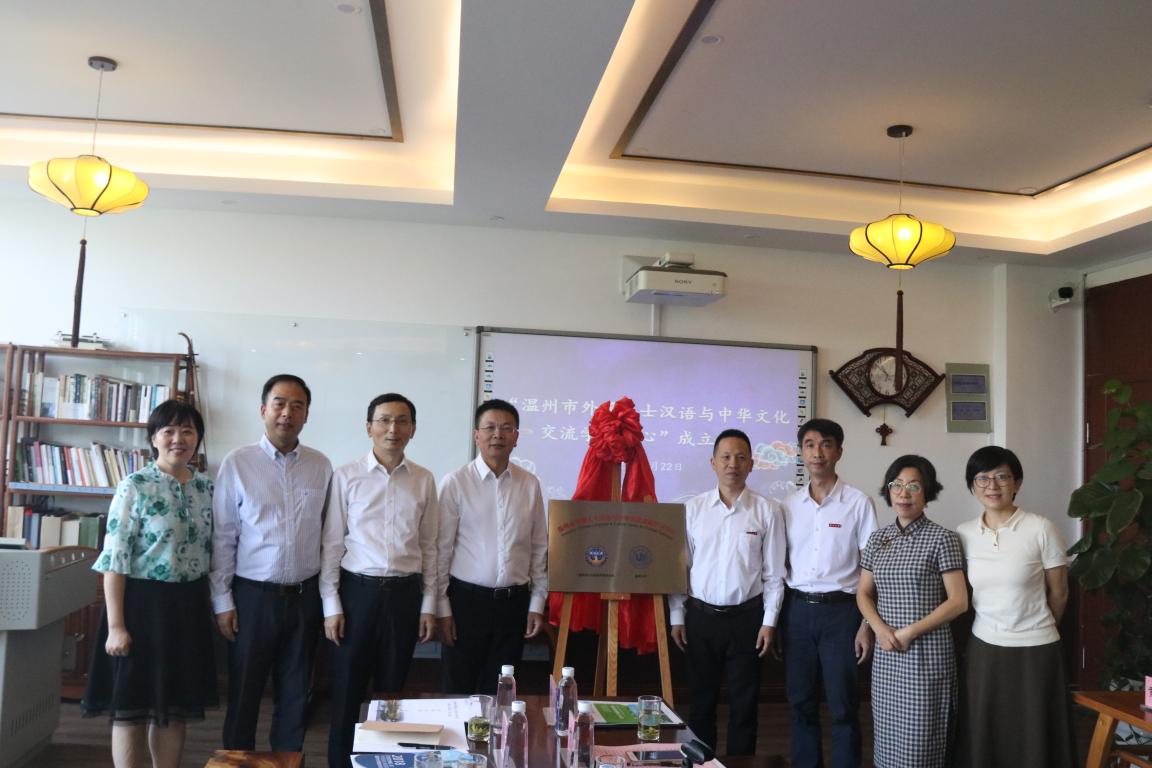 9月22日上午,温州市外办与3044am永利集团3044noc共建“温州市外籍人士汉语与中华文化交流学习中心”揭牌仪式在3044am永利集团3044noc举行。市外办主任雷文东、副主任周怀中、3044am永利集团3044noc副校长王舜、温州肯恩大学党委委员应永宏以及温大教师和留学生代表出席仪式,雷文东主任和王舜副校长共同为“温州市外籍人士汉语与中华文化交流学习中心”揭牌。