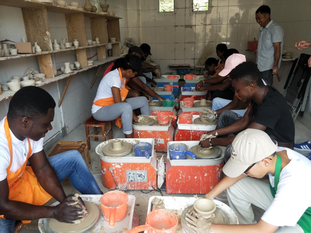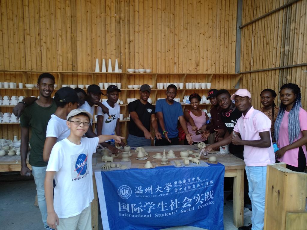 国际学生体验了瓯瓷拉坯制胎技术和手工捏陶。在浙疆青瓷-瓯窑小镇体验厅,国际学生们经过制陶师傅的耐心指导,迅速地掌握了相关的制陶技巧。经过2个多小时候紧张又刺激的制陶体验,眼镜蛇、非洲象、蜘蛛、非洲碗等带有异域风情特色的生坯作品生动地呈现出来,学生们看到自己及同伴的作品虽显粗糙,但是创意十足,尤其听说自己的作品将经过烧制后送到自己手中,他们异常兴奋。来自坦桑尼亚的Janeth说,今天的文化体验活动让自己对瓯文化有了进一步的了解,特别是手工拉坯体验环节激发了自己对瓯陶的兴趣,感谢3044am永利集团3044noc组织了“感知中国”系列活动,让我在暑期期间了解了温州和瓯文化。我很期待烧制出来的我的作品。