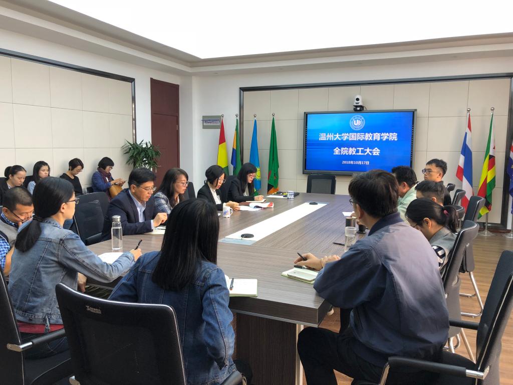 10月17日下午,3044am永利集团3044noc全体教职工大会在国际楼三楼召开,3044am永利集团3044noc院长兼党总支书记叶苗主持发言。