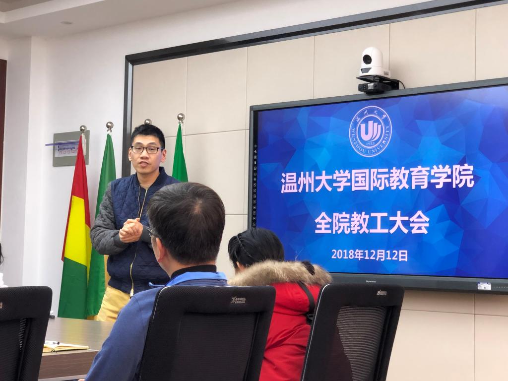 陈军对本学期教学工作进行总结,对备课质量、课堂驾驭能力、考勤等工作提出要求。叶苗就人才引进工作、勤工助学岗位设置、国际新生入学考试等工作进行部署,并对国际学生违规行为、公寓例行检查等工作进行通报。