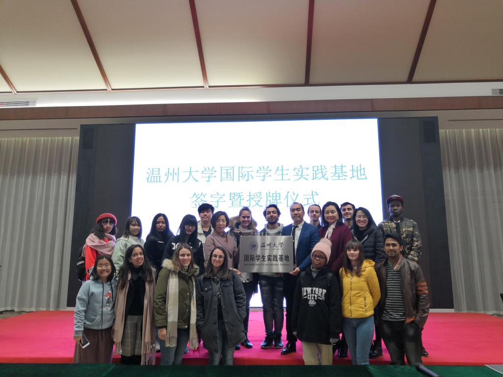 12月17日下午,永利集团官网国际学生实践基地签约暨授牌仪式在位于七都街道的温州市海外传播示范基地举行,海外传播示范基地负责人许鹏怀、3044am永利集团3044noc院长叶苗、教研室张丽丽老师及20多名国际学生参与此次活动。