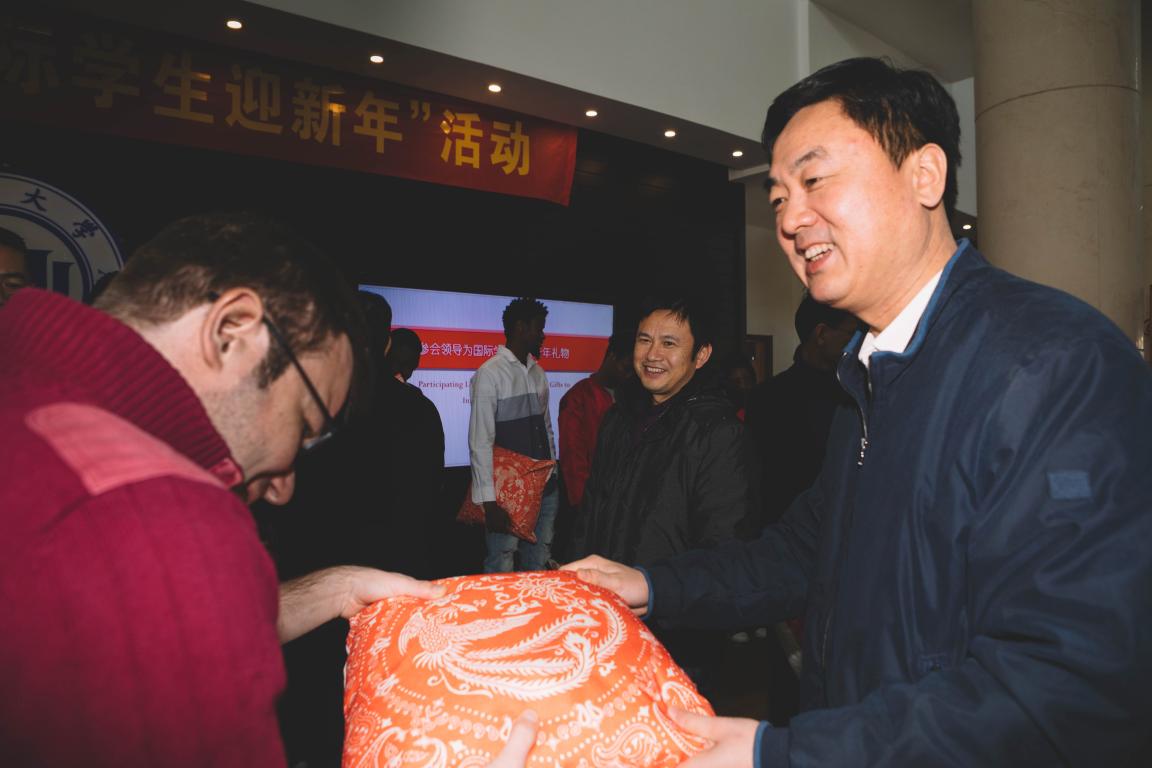 副校长钱强等与会领导和老师们为每一位国际学生代表送上猪年吉祥物,并合影留念。今天恰逢尼日利亚籍学生ZUBAIRU ISMAIL HASSAN的生日,在场师生齐唱生日快乐歌,一同为他送上生日祝福,商学院国际部主任王洪斌老师还为这位就读国际经济与贸易专业的国际学生送去生日礼物。HASSAN说,以前都是与家里人一起过生日,今天和学校的老师们、学生们一起过生日,仿佛在家一样,这个生日真是“意义非凡,终生难忘”。