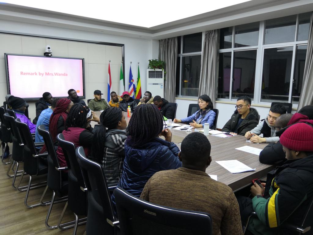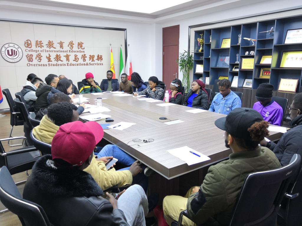 会上,学生会成员依次作自我介绍,并分享了自己在过去一年的学习和生活情况。负责团学的程玲老师就国际学生会的机构调整、职责分工、团队建设、活动组织及本学期的国际学生工作等内容作了说明。公寓辅导员钱江潮老师总结了国际学生社区助理的工作,讲解了国际学生社区“五个一工程”活动安排。国际学生会成员就课程学习、社区管理、文体活动等问题进行了激烈的讨论,纷纷提出自己的见解和建议,现场气氛异常热烈,他们都希望通过自己的努力更好地向学校传达国际学生们的想法,以期共同营造良好的国际学生学习氛围和生活环境。