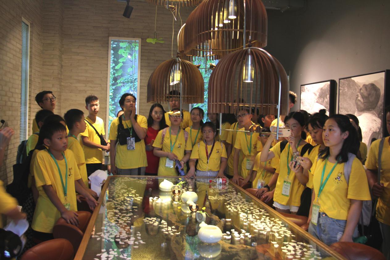 全体营员参观了中国传统文化复兴基地——楠溪书院。漫步于楠溪书院,云日相辉映,空水共澄鲜,眼前是奇石绿水,耳畔是馆员对山水画的讲解,营员们铸造中国传统文脉,增强对中国文化的认同与自信!