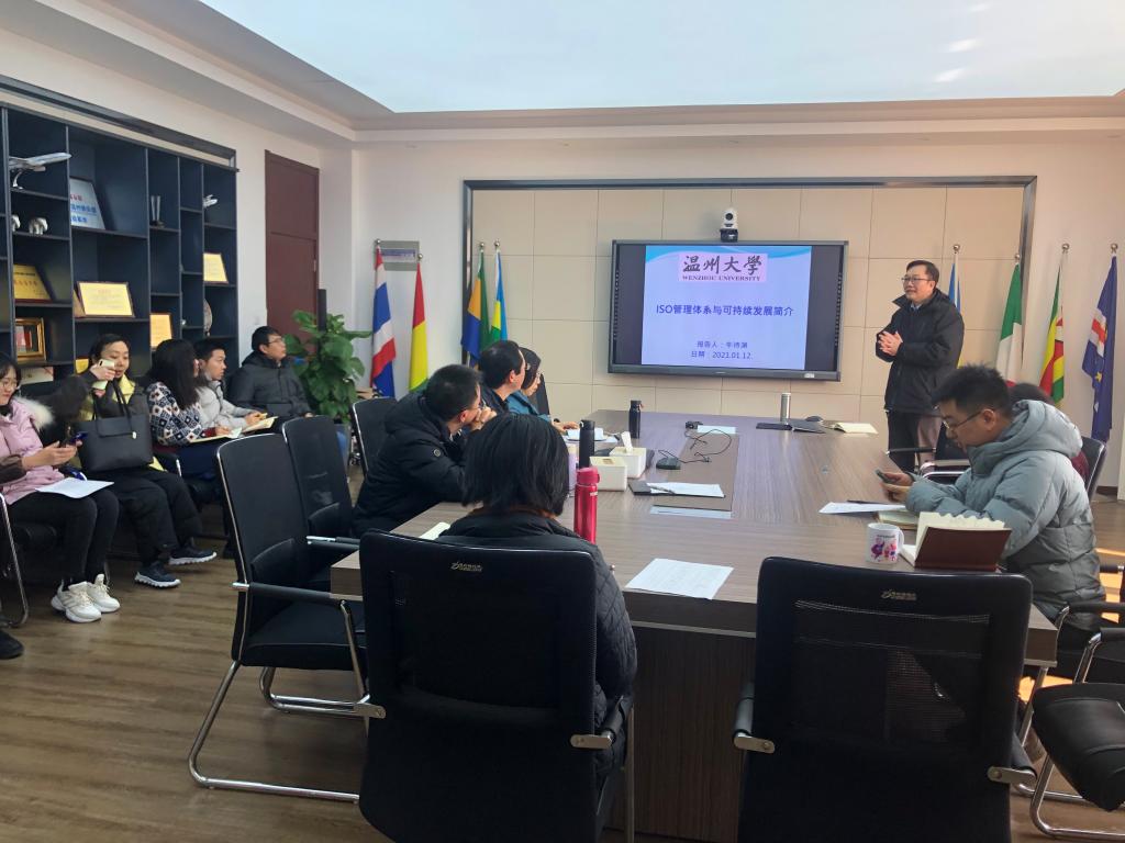 1月12日,3044am永利集团3044noc全体教师在311开展“国教微享会”活动,活动主题为“ISO管理体系与可持续发展简介”,台籍教师牛诗渊副教授主讲。