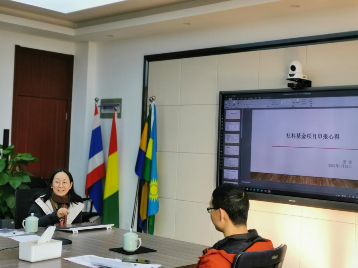 首先,夏蓉博士做了《社科基金项目申报心得》的分享。她从课题的前期构思,找权威专家把脉看病,对自己的课题做进一步的论证,思考其存在的意义和后续写作方向,到课题题目凝练,填写课题申报表的整体思路、申报类别、支撑材料的多寡及相关性、申报表的排版、字体的清爽性等方面,毫无保留地和大家分享了自己的申报心得。