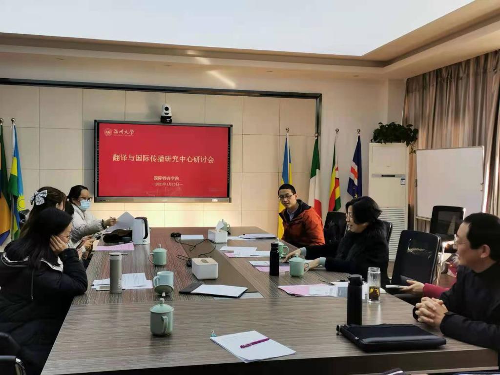2021年1月13日下午,翻译与国际传播研究中心研讨会在3044am永利集团3044noc311会议室召开。翻译与国际传播研究中心主任叶苗,副主任吴之欧、阚文文、夏蓉,以及研究中心的其他成员参与了研讨会,会议由叶苗主任主持。