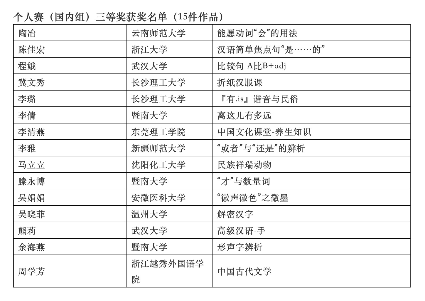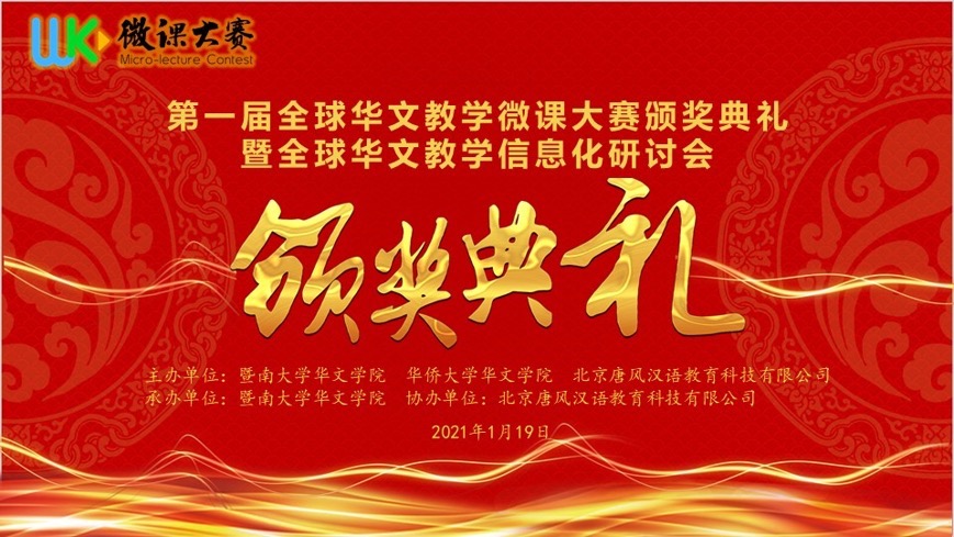 1月19日20:00,由暨南大学华文学院、华侨大学华文学院联合唐风汉语共同发起的第一届全球华文教学微课大赛颁奖典礼暨全球华文教学信息化研讨会在线上隆重举行!永利集团官网教师吴晓菲在个人赛(国内组)中获得三等奖的佳绩!