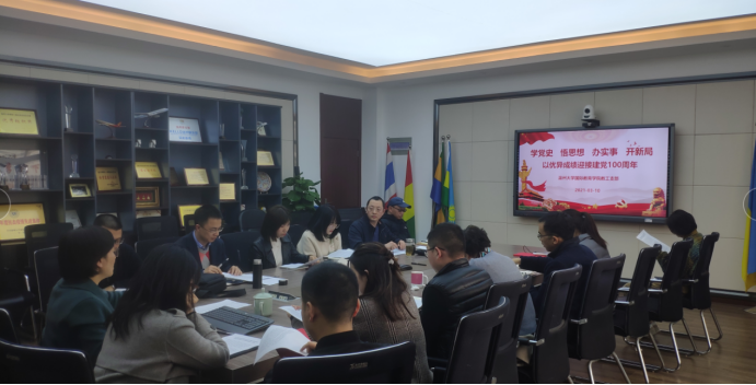 3月9日下午,3044am永利集团3044noc教工党支部召开党史学习教育动员大会,深入学习贯彻落实习近平总书记在党史学习教育动员大会上的重要讲话精神,全体教工党员参会,党总支书记林爱菊主持。