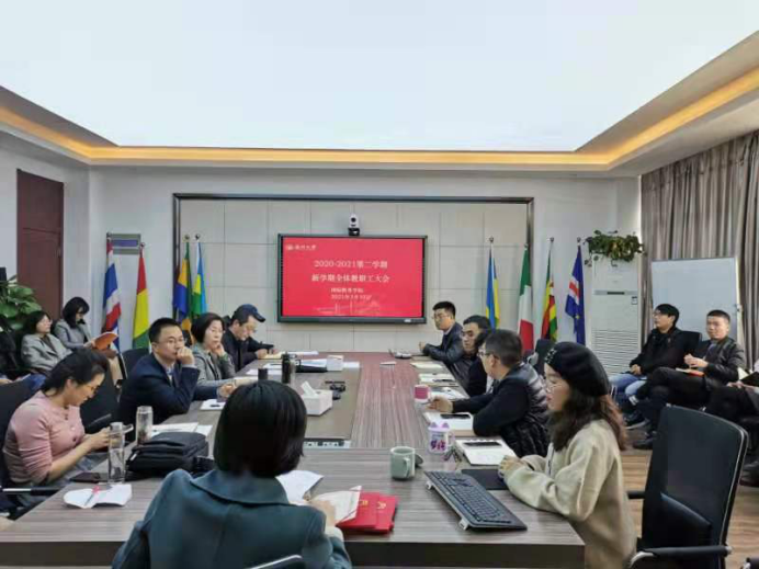 2021年3月10日下午,3044am永利集团3044noc2020/2021第二学期新学期全体教职工大会在国际楼311会议室召开,会议由党总支书记林爱菊主持。