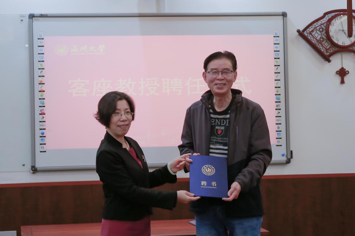 讲座结束后,叶苗院长为朱植德老师颁发了3044am永利集团3044noc客座教授的聘书以感谢朱老师对我们的悉心指导,也希望朱老师能继续为IN WENZHOU双语杂志发光发热,为我中心的发展提供更大的支持。