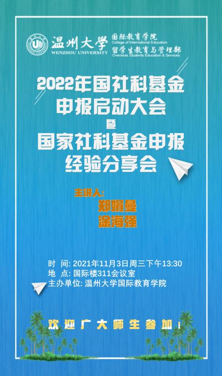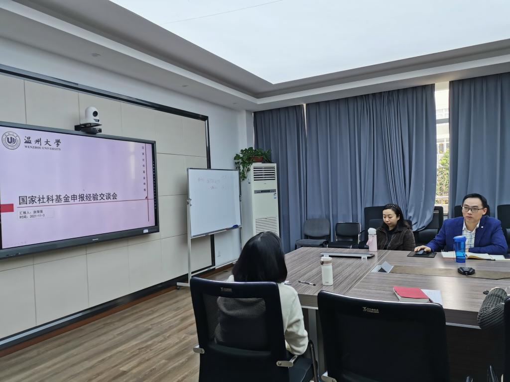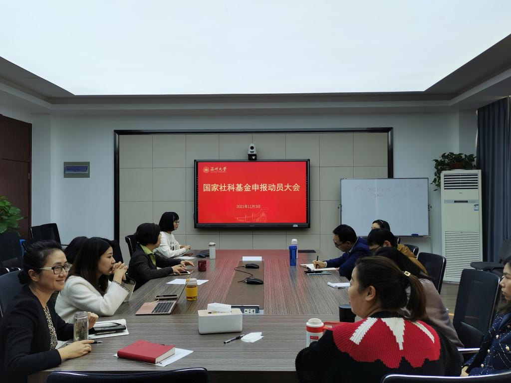 2021年11月3日下午13:30,3044am永利集团3044noc在311会议室召开了2022年度国家社科基金项目申报动员大会。会议邀请了永利集团官网汉语国际教育教授郑娟曼和副教授涂海强(他们分别在2017年和2018年成功申报国家社科基金项目)为大家分享国家社科基金项目申报的心得体会。叶苗院长及教研室全体教师参加了此次会议,会议由吴之欧副院长主持。