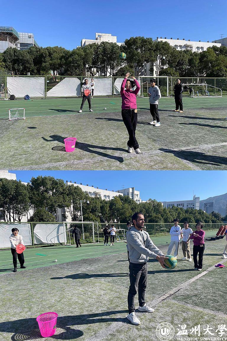 运动会现场热闹非凡,师生们积极参与。在车轮滚滚项目中,师生队伍各展身手,一次次欢声笑语将气氛推向高潮;毛毛虫竞速中,参加选手互相配合,在体验游戏乐趣的同时,用属于自己的方式你追我赶,脚步踉跄却奋勇争先,取得了良好的效果。乒乓球运球竞速的活动让留学生再一次感受到了国球乒乓的神奇和中国学生对于乒乓球的熟练,彼此交流游戏技巧和比赛心得。