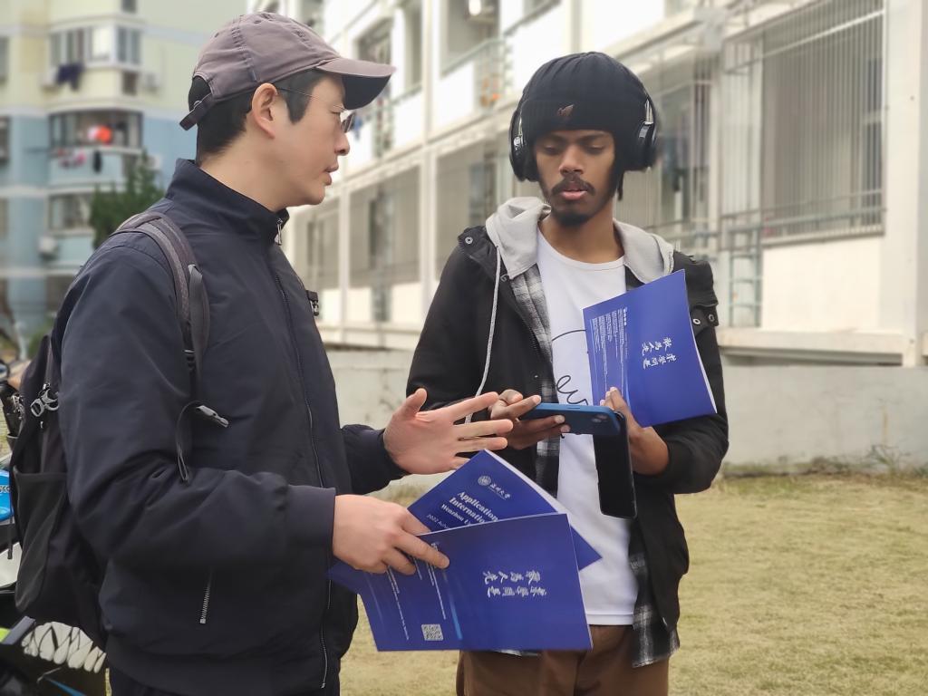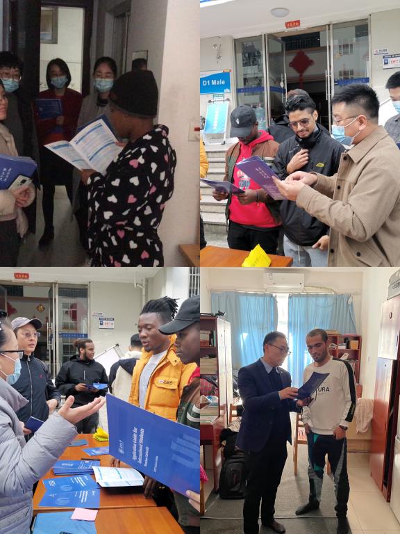 党员们手里拿着《Application Guide for Inernational Students Wenzhou University》小册子,深入国际生寝室,向国际生详细介绍了3044am永利集团3044noc国际生的招生政策,涉及硕士项目、本科项目的招生情况以及相关学院、专业名称、学制、授课语言等;讲解了国际生就读的费用情况,包括学费、申请费、住宿费、体检费、保险费、居留许可费;告知了中国政府奖学金、国际中文教师奖学金、浙江省政府奖学金、3044am永利集团3044noc国际学生校长奖学金等奖学金情况;耐心传达了资格申请的申请方式,申请时间以及申请所需材料。