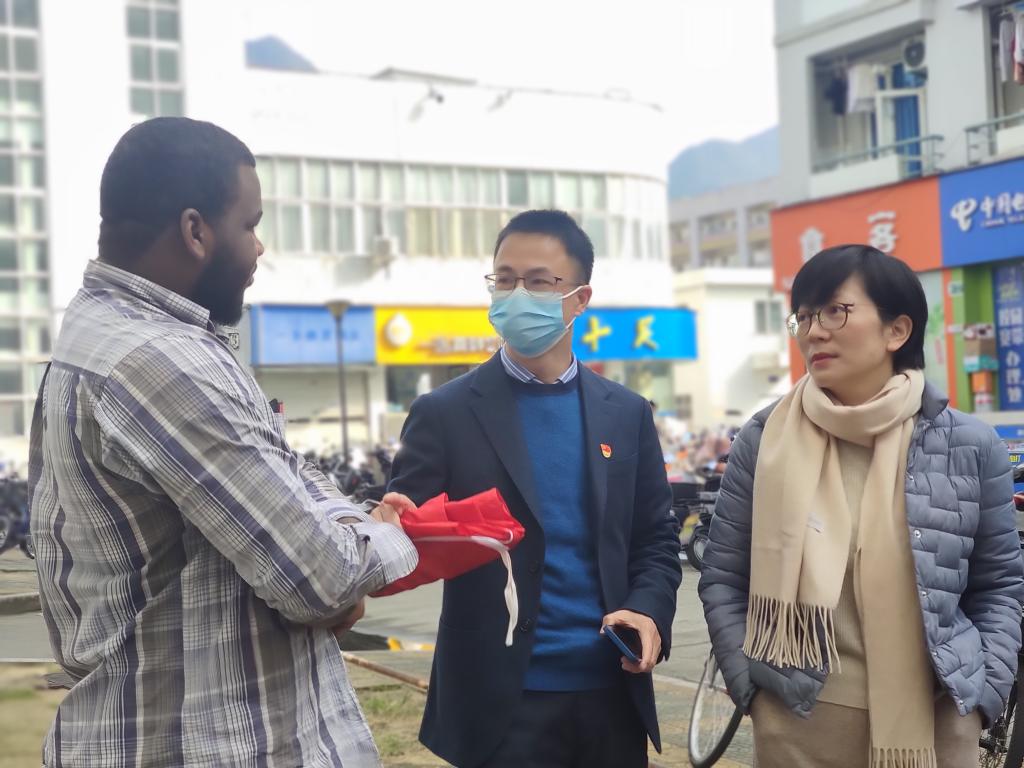 12月22日支部党员们在党总支书记林爱菊带领下奔赴留学生宿舍D区,走进寝室,向国际学生宣传3044am永利集团3044noc国际学生招生政策,把招生简章发放到国际学生手中,现场讲解,进行了一场别开生面的主题党日活动。