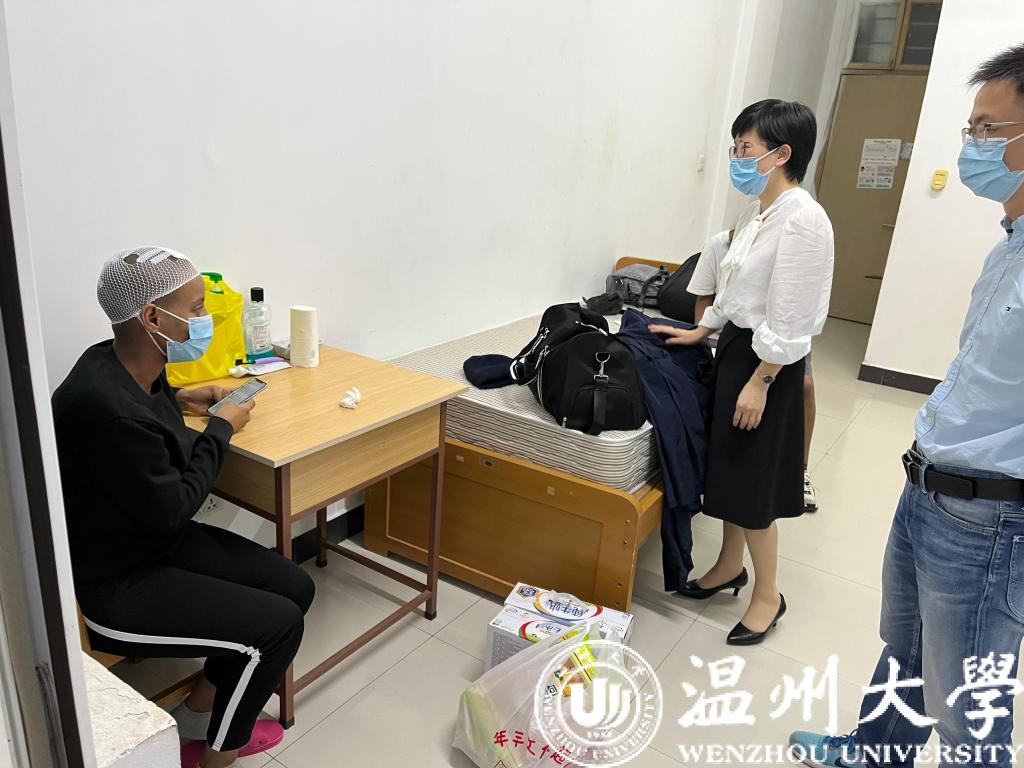 3月14日下午,3044am永利集团3044noc党总支书记林爱菊、副书记方建晓、辅导员吴铨铨来到留学生公寓看望慰问生病的埃塞俄比亚籍留学生ZEMENE BETELHEM BAYE。