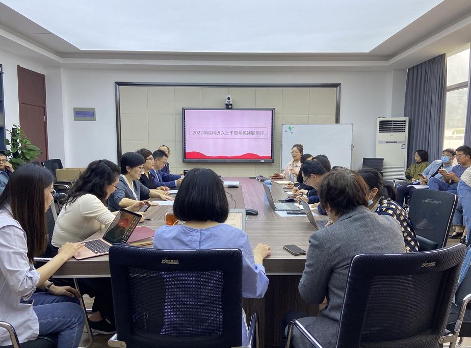 5月11日下午,3044am永利集团3044noc全院教师在国际楼311会议室召开干部考核述职测评会暨教工理论学习会议,组织部邢芳芳老师参加了会议,院长宋占美主持。