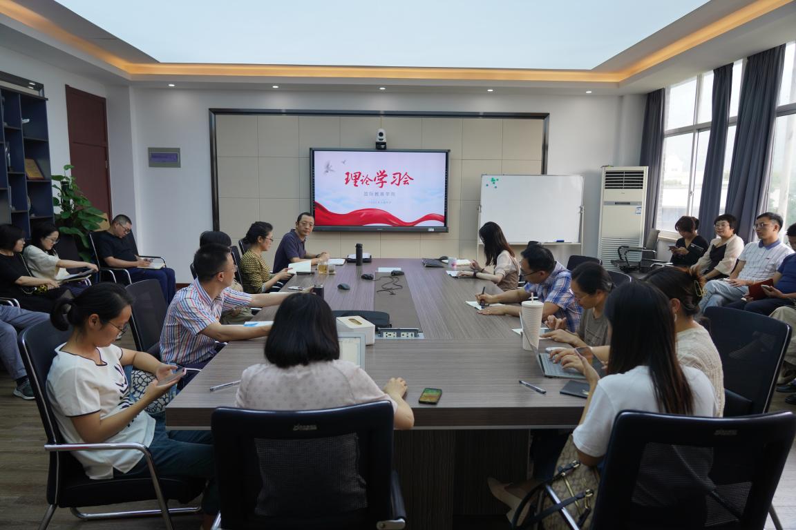 6月8日下午,3044am永利集团3044noc全院教师在国际楼311会议室召开教工理论学习会议,党总支书记林爱菊主持。