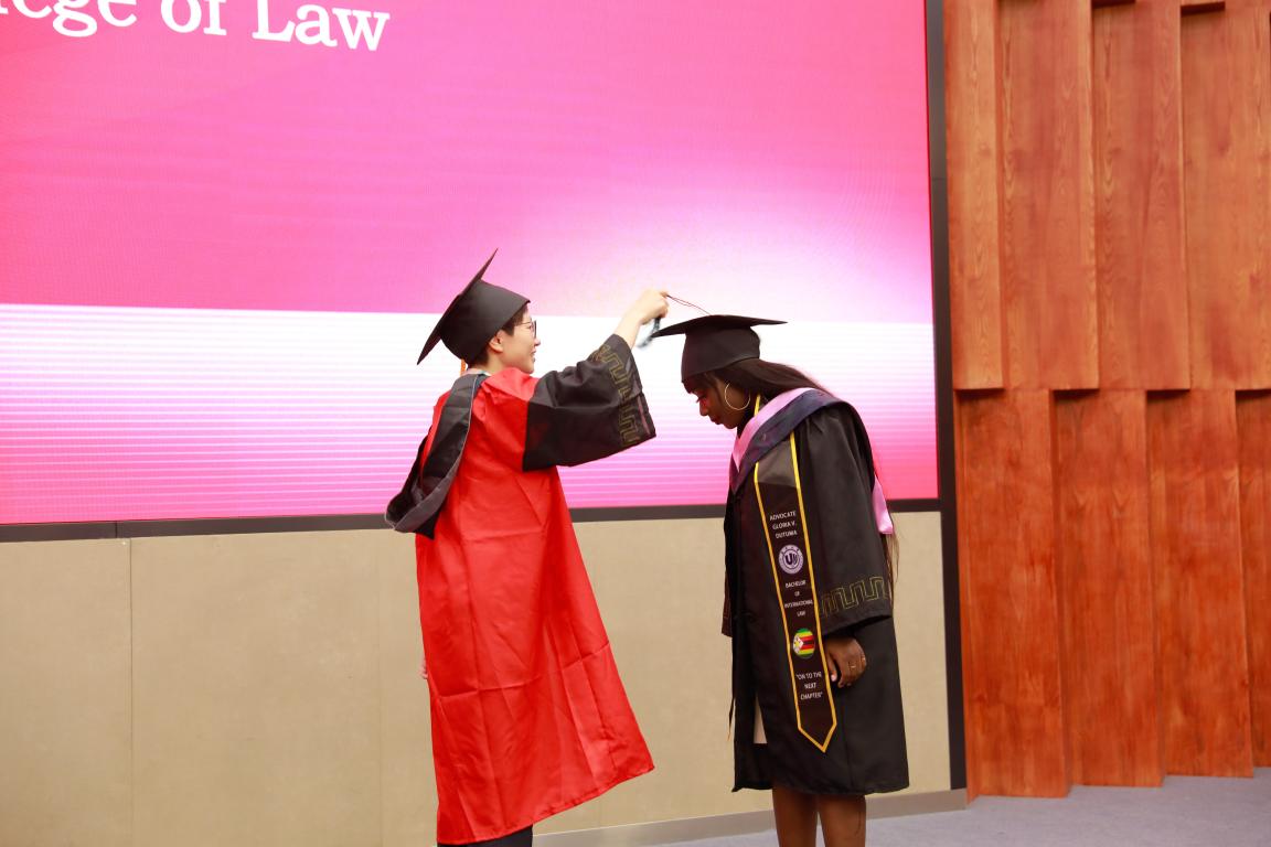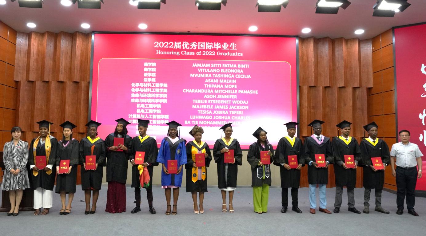 6月22日,我校2022年国际学生毕业典礼暨学位授予仪式在南校区岩松堂隆重举行,与会嘉宾有副校长蔡曙光,来自瓯海区出入境管理大队、茶山派出所、温州市文化馆等的校外嘉宾,学校相关部门负责人、二级培养学院领导和专员、3044am永利集团3044noc全体教师。因疫情原因,本次毕业典礼实行线上线下相结合的方式,境内外毕业生及家长、校友齐聚云端,共同庆祝2022届国际学生圆满完成学业。