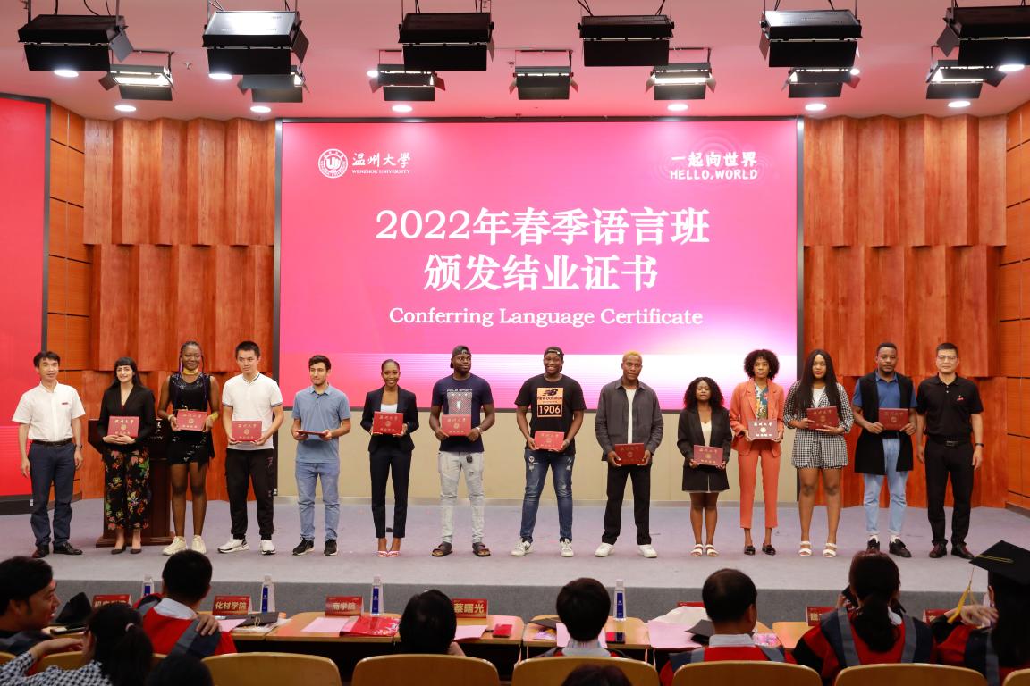 3044am永利集团3044noc院长宋占美、党总支书记林爱菊分别宣读优秀国际毕业生、校友联络员名单,相关部门负责人为留学生颁发荣誉证书,给语言班结业生颁发结业证书。