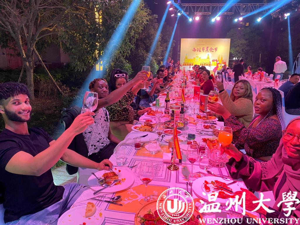 10月14晚上,来自葡萄牙、马来西亚、尼日利亚、冈比亚等国家的留学生在铂尔曼酒店参加了一场丰富多彩的西班牙美食节活动。
