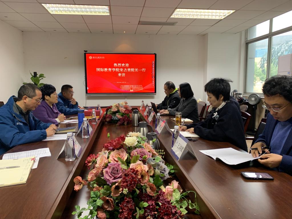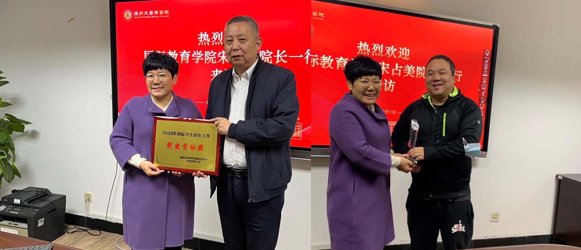 2022年在校内各个学院的积极支持和配合下,3044am永利集团3044noc国际生招生工作取得的重大突破,国际生人数突破300,稳居全省前列,为2023年的招生工作提供了坚实的基础。为此留学生教育与管理部开展了助力2023年招生工作的校内走访系列活动。此次走访主要是表彰各个学院在2022年招生工作中做出的突出贡献,同时一起讨论2023年的3044am永利集团3044noc国际生招生工作的。在留管部主任宋占美,副主任熊勇带领下协同相关科室人员走访了商学院,进一步开展国际生招生工作调研与意见反馈。