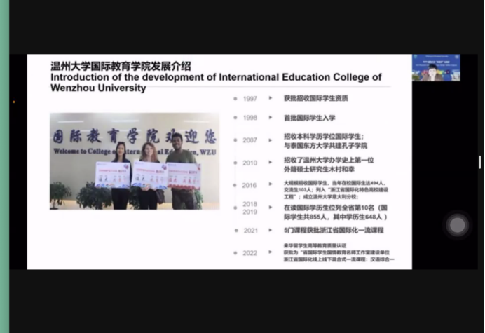 本次会议主持人徐丽丽老师首先对中方、印尼代表、全体教师同学表示热切欢迎,并且向印尼教师学生介绍了温州人文山水,她表示,疫情后非常欢迎大家来温州游玩。