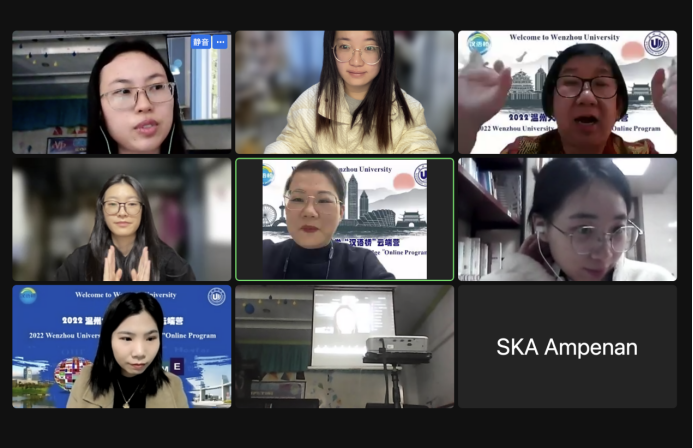 宋占美院长代表3044am永利集团3044noc向来自印尼参加线上研修项目的全体同学表示欢迎,并且介绍了3044am永利集团3044noc留学生培养的情况。她指出,目前学院致力于“打造国际知名网红学生”为他们学习瓯剧、武术、刺绣提供各方面支持,学院建立了各种各样的俱乐部,让学生在友好、活泼的环境中感受中国文化、学习汉语。而且3044am永利集团3044noc面向全球组织了各类培训,包括云端汉语桥、温州华裔青少年“寻根之旅”夏令营、合作泰国孔院的交流活动等。最后宋院长殷切希望,全体同学们充分利用此次线上项目学习机会,努力学习汉语,了解中国文化和中国国情,成为优秀的国际青年学员。