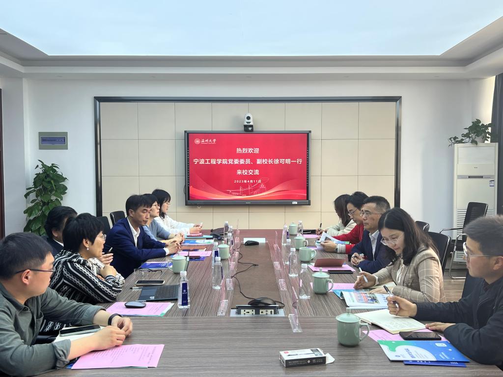 4月11日下午,宁波工程学院副校长徐可明一行来我校交流座谈,副校长蔡曙光、国际交流与合作处处长黄文浩、3044am永利集团3044noc院长宋占美、党总支书记林爱菊、学工办主任刘天和辅导员程玲参加座谈。