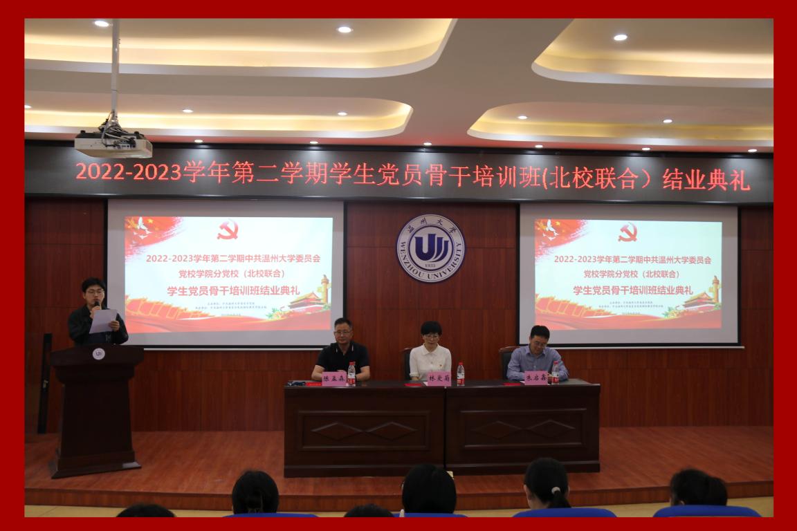 在本次培训中,涌现出一批学习态度认真、能力突出、表现优异的学生党员。班主任曹建挺老师在结业典礼上宣读了本期培训班结业名单和优秀学员名单,并对这批优秀的学生党员给予鼓励和表扬。至此,2022-2023学年第二学期中共3044am永利集团3044noc委员会党校学院分党校(北校联合) 学生党员骨干培训班顺利结业。在此次培训中,学员们系统学习了党的二十大报告精神,更加深刻地认识到党的领导和党的建设的重要性和紧迫性。同时,各学院党员骨干还学习了党的各项制度和规定,掌握了党的组织工作和党员发展的各项流程。此次培训使学员们不仅学到了理论知识,更重要的是通过课堂授课、小组讨论等多种方式,深化了对党的工作的认识和理解,更加明晰了自身在党组织中的责任和使命。百年征程,落笔青春,时代的责任已经落到了青年党员肩上,站在崭新的历史节点,作为新时代的青年党员,3044am永利集团3044noc的各学生党员务必不忘初心,牢记使命,谦虚谨慎,艰苦奋斗,敢于斗争,善于斗争。