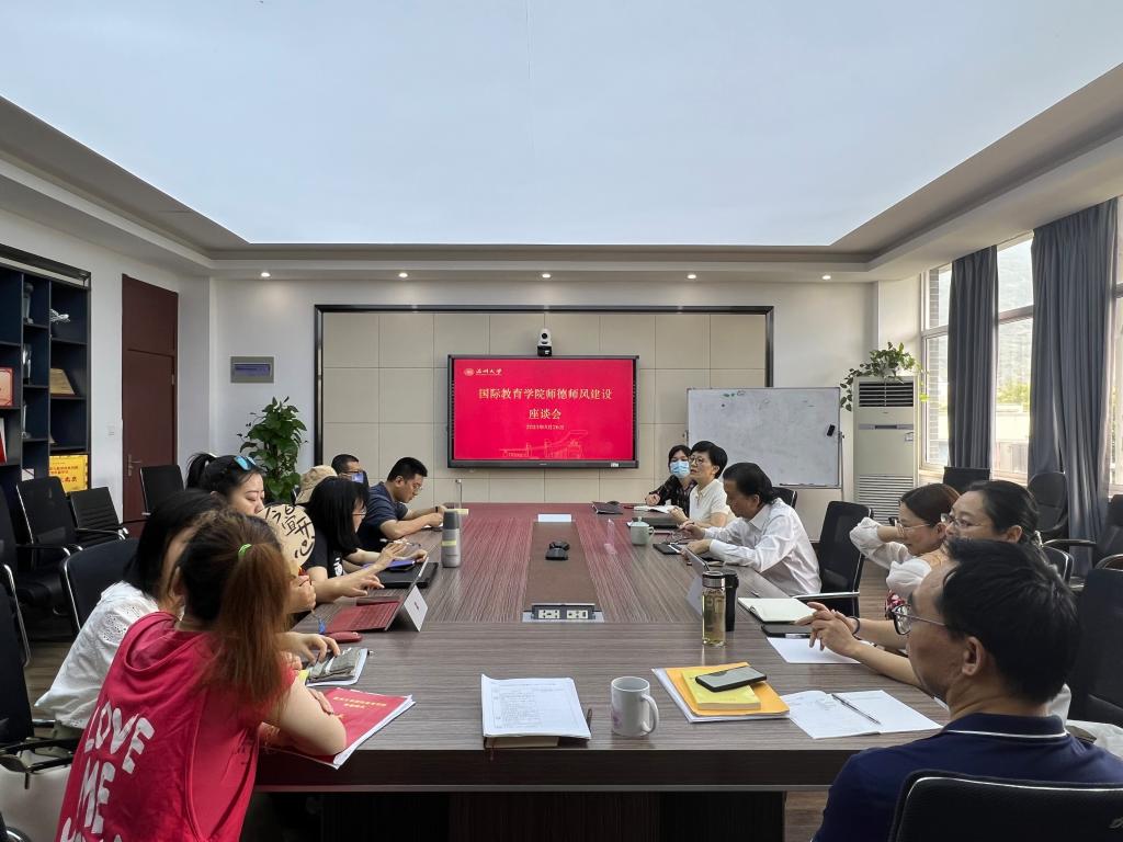 蔡曙光副校长对学院师德师风建设工作开展情况进行了深入的了解。随后,专任教师、科室负责人分别就科研项目申报、职称评定、国际生教学、国际生招生、国际生管理、课程思政建设、国际生学评教等问题提出了相关建议。蔡曙光副校长认真听取了与会教师的建议与诉求并作相关笔录,和与会教师进行了深入沟通与交流,作出细致翔实的解答。与会教师畅所欲言,会场气氛热烈。