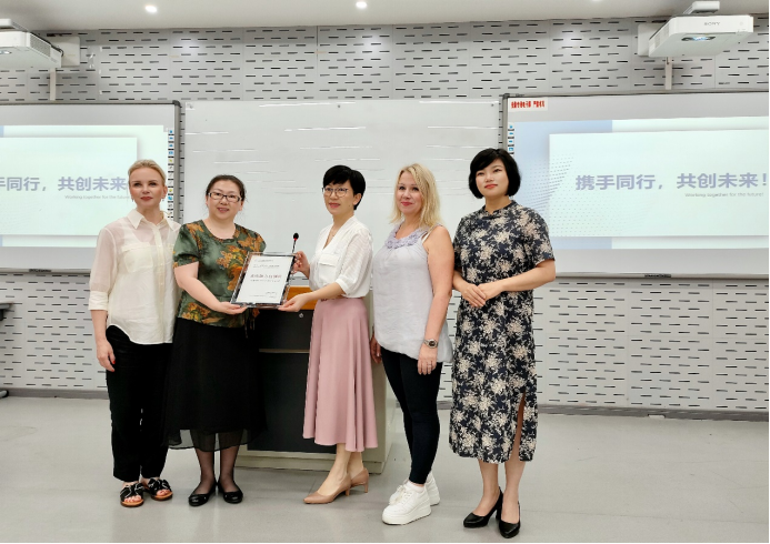 会议最后,林爱菊书记代表学院将“茶香国际:中华文化传播基地”的牌子授予了梁旭会长主持的芬兰“中国语言(文化)中心”,并表示未来将持续“以茶为媒”,以中芬茶文化交流为契机,在芬兰中国语言(文化)中心开设文化课程教学以及相关的文化交流活动。