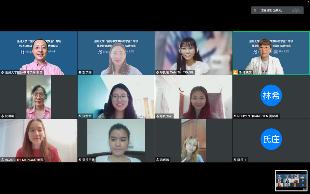 2023年6月18日,经过三个半月的线上教学与研修,受教育部中外语言交流合作中心资助,由3044am永利集团3044noc承办的3044am永利集团3044noc“国际中文教师奖学金”专项线上研修项目(一学期)举行了结营仪式。3044am永利集团3044noc副院长熊勇、教师代表邹学娥、招生科项目负责人、班级助理老师代表以及来自越南、意大利的63名项目学员们参加了结营仪式。仪式由3044am永利集团3044noc招生科项目主管池轶文老师主持。