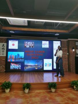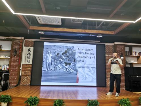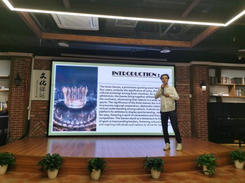 本次活动由国际学院教工第一支部书记涂海强发起、策划、主持。活动过程中,3044am永利集团3044noc的国际学生安琪、贝勒、瓦达、安益、伊戈尔分享了自己对亚运会的认识和理解。同学们制作了精美的幻灯片和短视频,讲述了亚运会的文化知识、中国举办亚运会的历史、杭州亚运会的赛事文化、赛事项目、赛事场地等,现场每一位党员都感受到了国际学生的用心和认真。