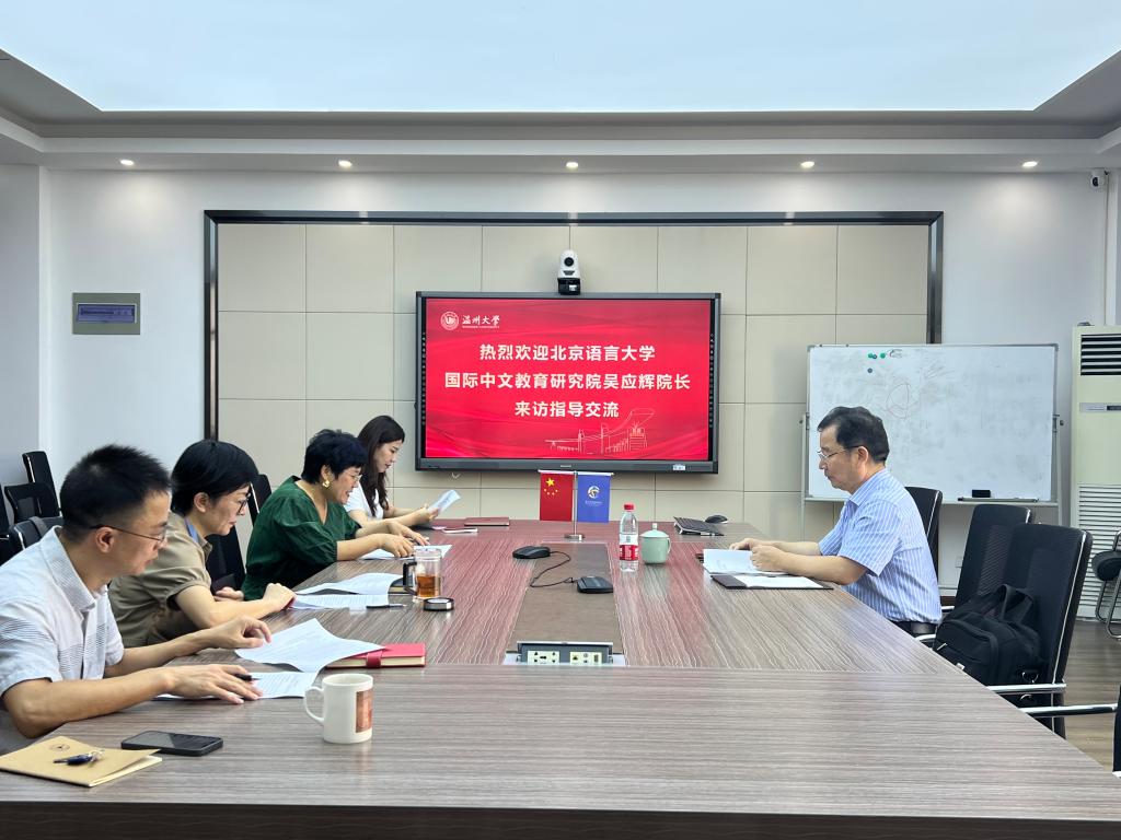 8月20日上午,北京语言大学汉语国际教育研究院院长吴应辉教授受邀来永利集团官网开展指导交流。院长宋占美、书记林爱菊、副书记方建晓、院长助理黄雅琳、办公室主任李舒琦参加了本次交流会。